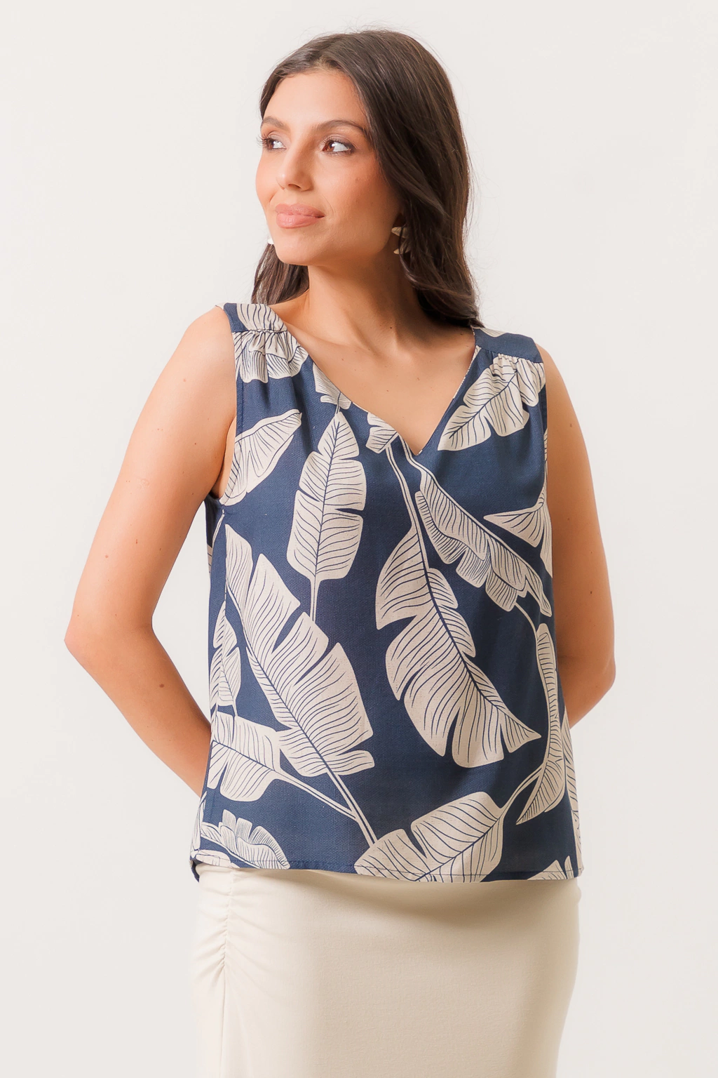 O decote em V e o detalhe de pala no ombro com franzido são destaques que adicionam charme à peça. Além disso, o decote nas costas com franzido eleva o design, tornando-o ainda mais elegante. Perfeita para diversas ocasiões, essa regata é um must-have no guarda-roupa feminino.