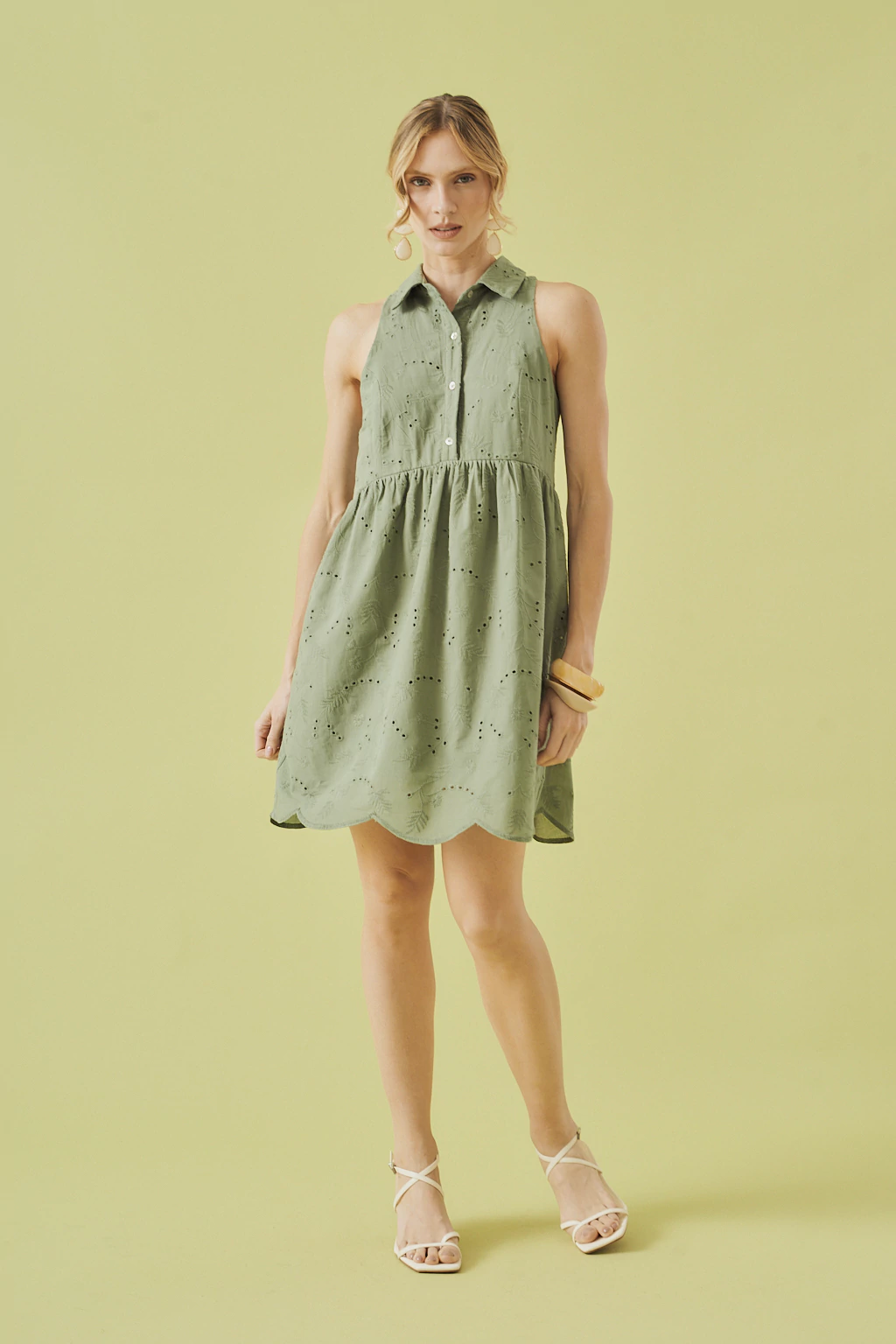 Quem busca elegância e frescor em uma única peça. Confeccionado em tecido de algodão bordado, este vestido oferece um toque leve e sofisticado, ideal para os dias quentes e para compor looks versáteis.