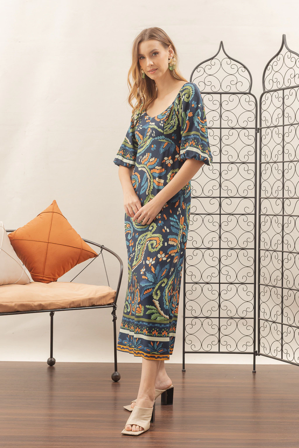 Destaque-se com o Vestido Maxi Pasley Azul Marinho e experimente a união entre exclusividade, conforto e design atemporal.
