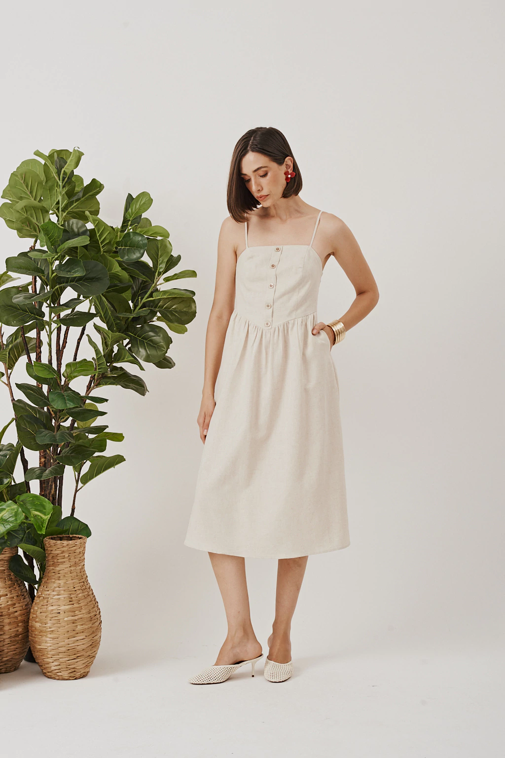 Descubra o charme e a leveza do Vestido Midi com Botões, uma peça essencial para quem valoriza conforto aliado à sofisticação natural. Confeccionado em tecido de fibras naturais texturizado com aspecto rústico, este vestido é perfeito para compor looks elegantes e frescos nos dias mais quentes.